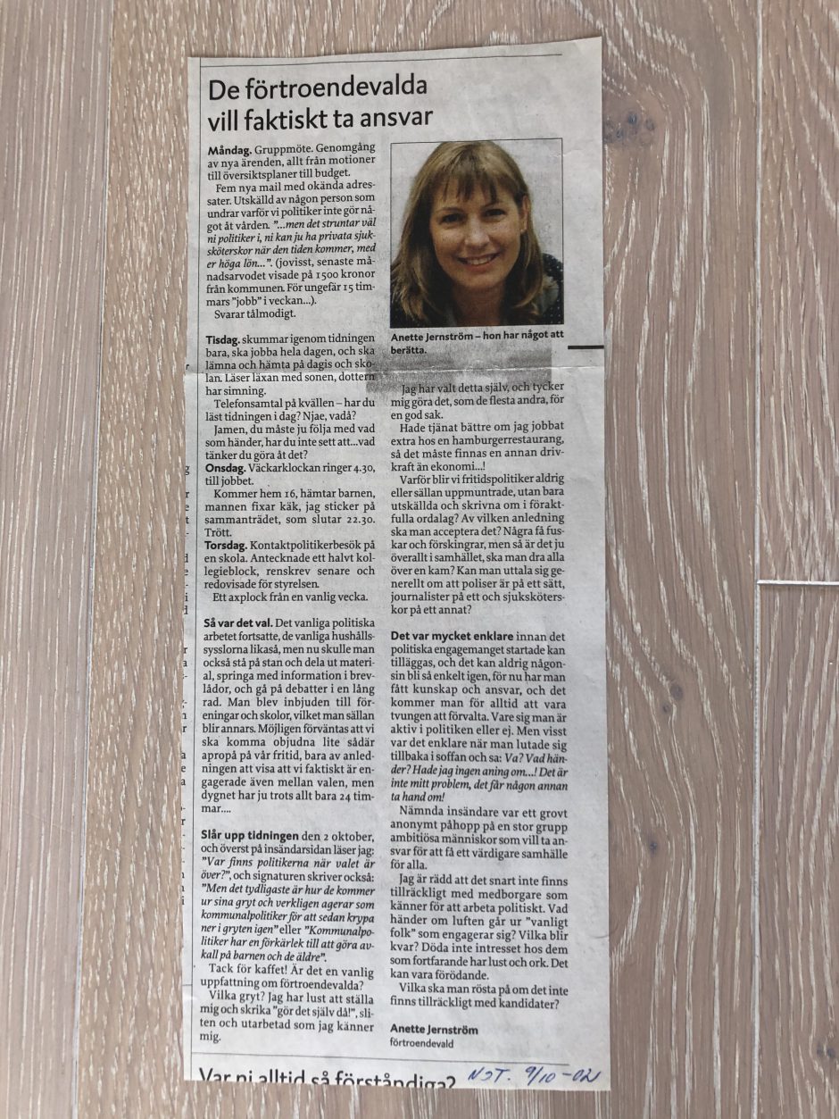Det är val om ett år, och ibland funderar jag på hur livet hade sett ut idag om jag fortsatt på politiker-banan. Hade jag gjort karriär och blivit ordförande i någon nämnd? Hade jag kandiderat till riksdagen? Hade jag gått i pension med fullt arvode? Det var visst roligt, engagerande och lärorikt – absolut. Men […]