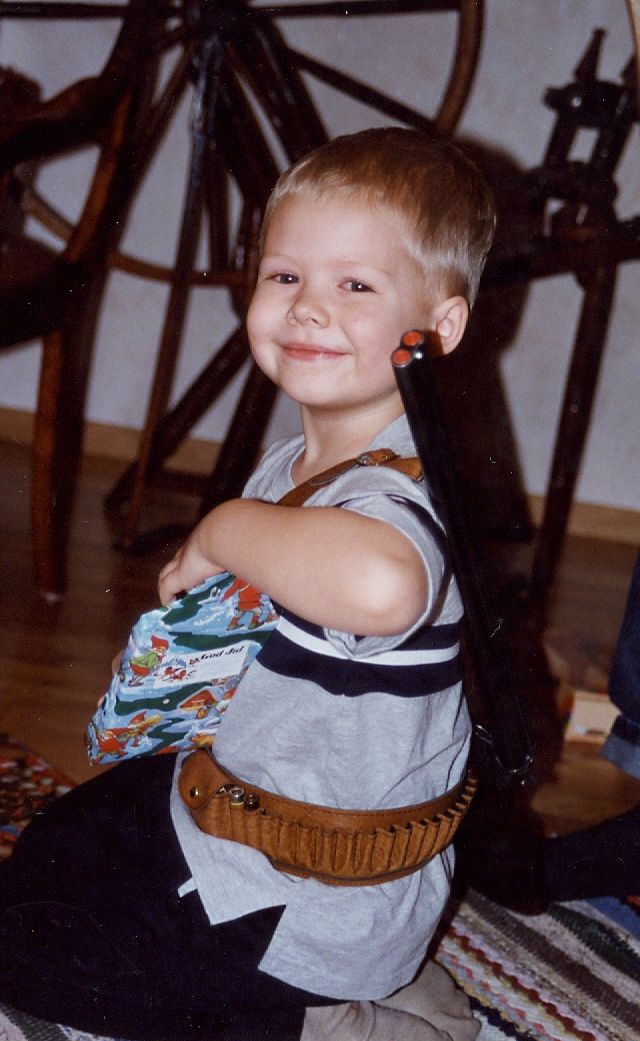 När jag inte ville att han skulle leka med vapen som liten bet han sin smörgås som en pistol och ”pangade” med den, så något var det som lockade hans intresse.